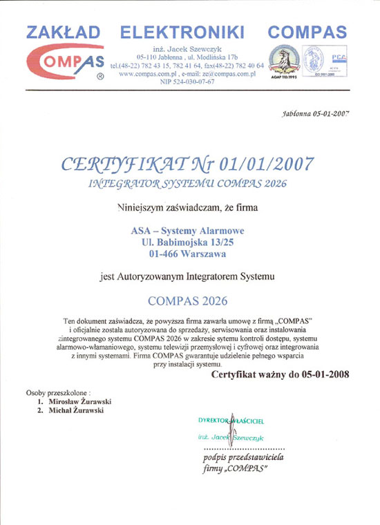Świadectwo SAGITTA Spółka z o.o.